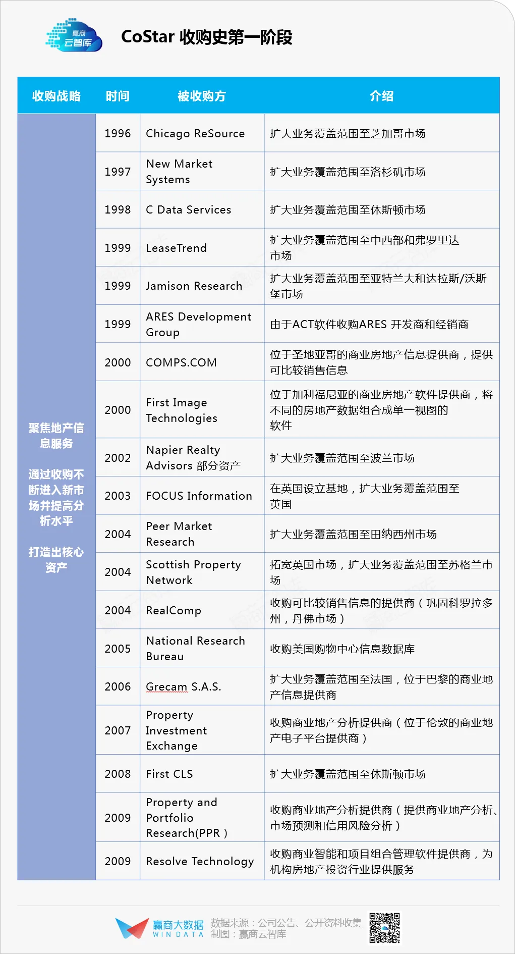 2011年前,CoStar 的业务始终聚焦房地产信息服务,收购动作围绕扩大并优化房地产信息数据库展开。
