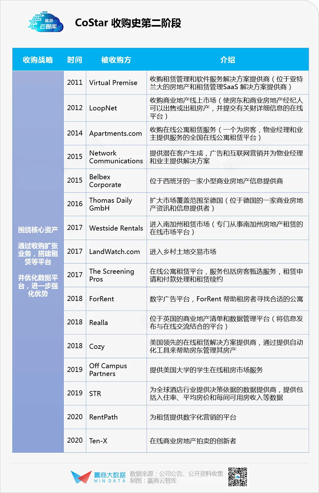 围绕核心资产,CoStar从2011年起借由收购Virtual Premise与LoopNet,进入在线租赁领域。