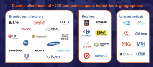 近两年投资超10亿美元用于数据与AI研发,推出生成式AI工具“NIQ Ask Arthur”,提升预测分析能力。AI驱动的数据平台处理数万亿条记录,覆盖140万家零售终端,用户数从2023年2500名激增至2025年4万名客户覆盖服务超3万家企业客户,包括零售巨头和品牌方基石募资相关