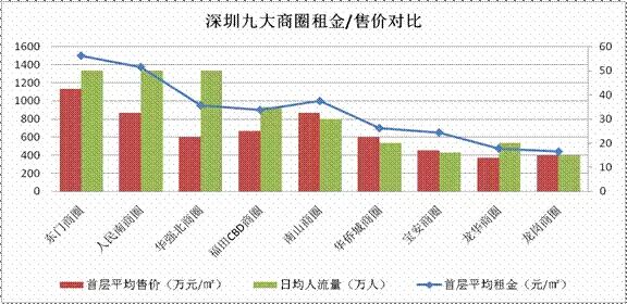 通过对深圳九大商圈的规模、人流、业态、租金及成熟度等各维度分析,投资性价比高的商圈:人民南商圈、福田CBD商圈、龙华商圈的租金排名低于其商圈实力排名,投资性价比高,商业升值潜力巨大;