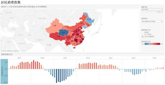 可视化的工具有很多,这里我推荐微软的Power bi或者Tableau。这两款都不要编程功底,实现起来简单,功能强大。下图是tableau工作的示例:(居民消费指数-仪表盘)