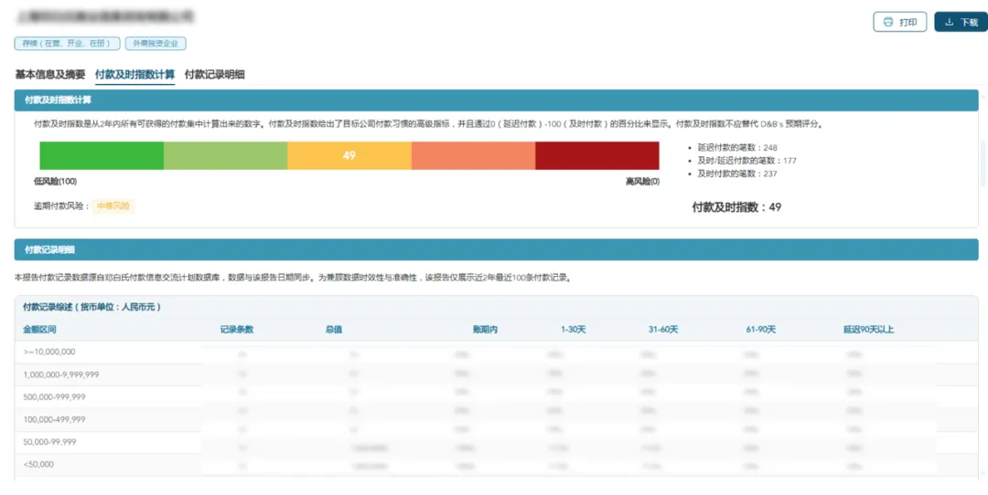 为更好地助力企业洞察商业信用,平台在信用模块中还特别融合了邓白氏独创的付款信息交流计划(DUNTrade®)。参与此项目的用户可以在平台上查询客商付款表现及行业付款趋势。