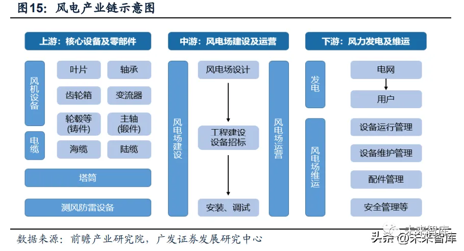 风电市场从政策驱动转变为由市场驱动,上游运营商主导产业链话语权,降本 将成为产业链可持续发展的要求。从补贴政策来看,陆风和海风分别已经在2020年 和2021年进入补贴退坡,风电市场为由政策驱动转变为由市场驱动,进入平价时代。从风电产业链特点来看,下游运营商多为国有企业,且玩家数目少,对风场/电站资 源的分配制使其在产业链中占据主动话语权地位;下游运营商会将风电平价下的成 本压力逐步向产业链中游和上游传递,降本将成为产业链可持续发展的新要求。
