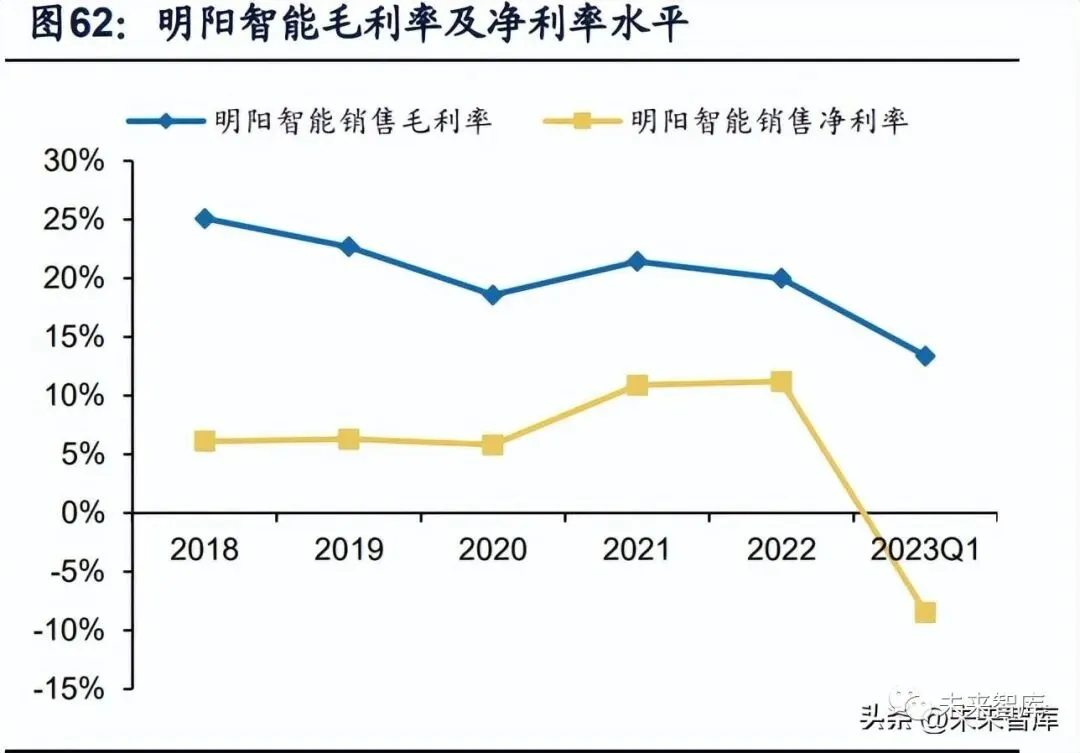 287.31/382.45/562.65/505.71/464.37亿元,同 比 +14.33%/+33.11%+47.12%/-10.12%/-8.77% ;归 母 净 利 润 分 别 为 32.17/22.10/29.64/34.57/23.83 亿 元 , 同 比 +5.30%/-31.30%/+34.10%/+16.65%/ -36.12%。2018-2020年营收加速增长,大型化降本和疫情压制2021/2022年收入表 现。公司2023Q1营收55.65亿元,同比-12.83%,归母净利12.35亿元,同比-2.42%, 毛利率25.23%,同比-1.28pct;净利率22.88%,同比+2.49pct。一季度盈利能力边 际提升,主要系出货结构改善。