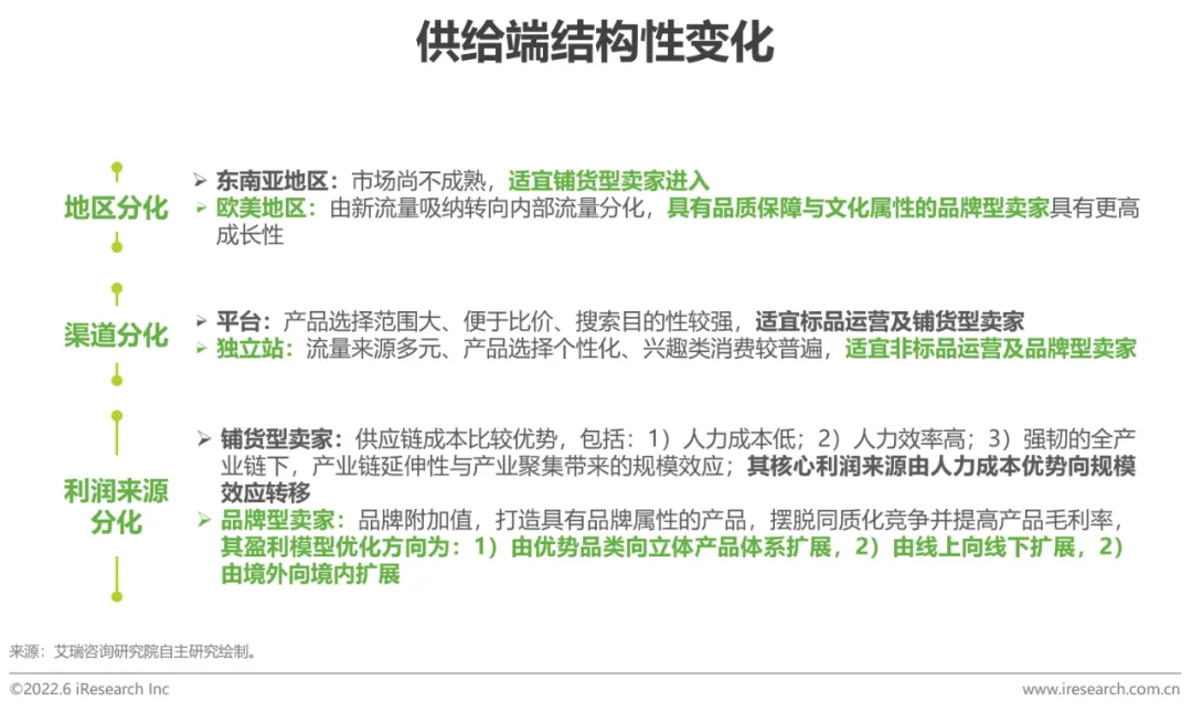 跨境消费需求推进卖家结构性分化,品牌型卖家更具盈利性伴随跨境电商红利释放,跨境电商消费者需求发生结构性变化,进而影响卖家经营策略与结构。在需求端,欧美地区跨境消费习惯已养成,消费者由年轻群体向全年龄段覆盖,品质消费趋势下,跨境电商行业增长逻辑从产品溢价向品牌溢价过渡,以产品品质与文化属性为基石的品牌型卖家面临广阔的市场整合空间。品牌型卖家逐渐采用精品型运营策略,业务目标由外部绝对的订单增长转向内部相对的成本管控、业务流程优化、产品体系优化、消费粘性巩固等方面。而东南亚地区年轻消费群体的消费能力普遍较低,尚处于本地消费线上化阶段,线上消费成熟度有待进一步培育,长期增长潜力显著。