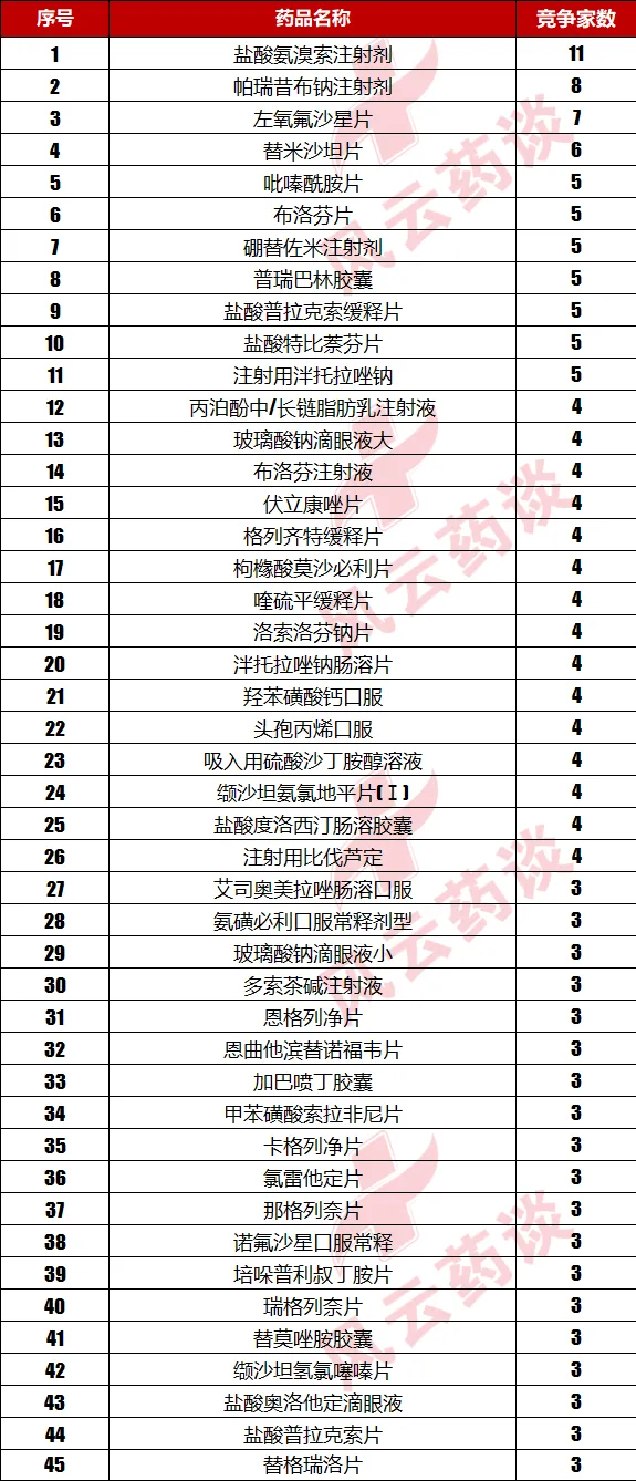 前几天所说加速审批话音未落,氨溴索注射液就由9家上升到11家,热门品种帕瑞昔布钠也是多达8家。