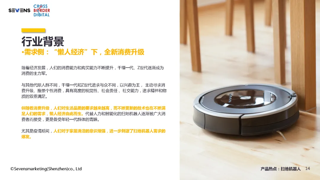 摘要:随着物联网技术渗透千家万户,90后成为消费主力,懒人经济风潮下,代替人力、解放双手的电子产品已成消费必然趋势。同时大环景导致我们的生活方式发生了变化。