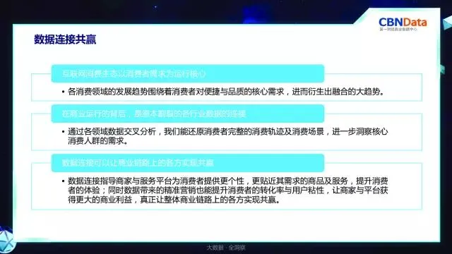 2、数据连接还原完整价值。链家、滴滴出行与美团点评数据连接可共建动态商圈画像。同时,信息生产与商品生产方数据的连接让商业链条各方受益。