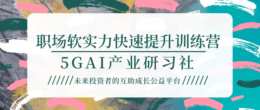 5GAI产业研习社是首个专注研习5G-AI的互助学习平台,所有成员之间互相学习、互相进步、教学相长。我们的愿景是成为5G-AI行业报告的引领者,在组织大家共同学习的同时,寻找研习社的未来合伙人,和我们一起专注于这一领域,不断产出关于5G-AI且对社会和市场有参考价值的报告。