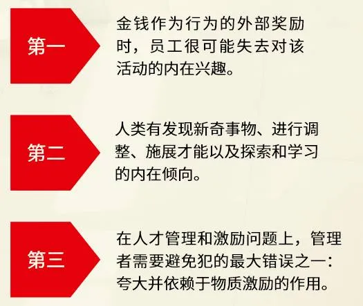可见,管理者如果希望提高员工的工作积极性,就不应该把控制力完全放到金钱奖励这样的外控系统上。考核和奖励像是咖啡因,能带来短期效应爆发,却难以持续,破坏人才工作的长期积极性。