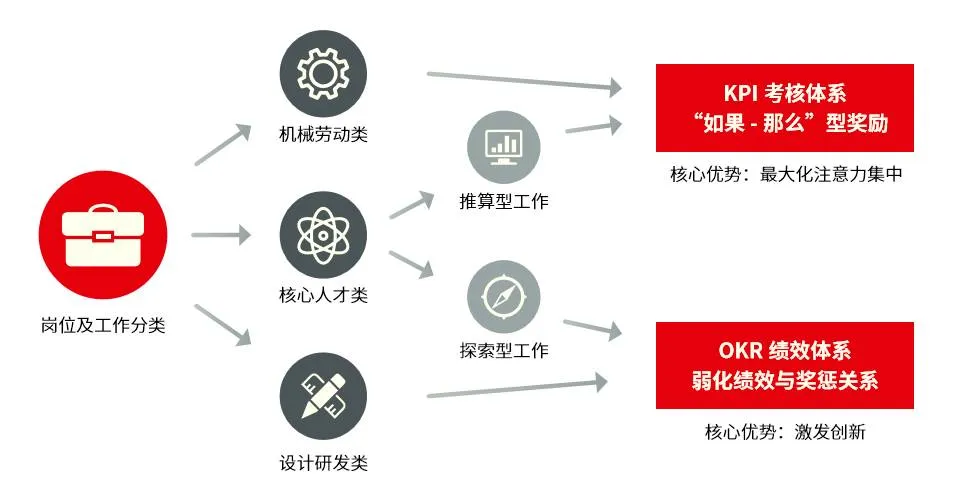 1. 针对不同岗位及工作分类的绩效体系选择