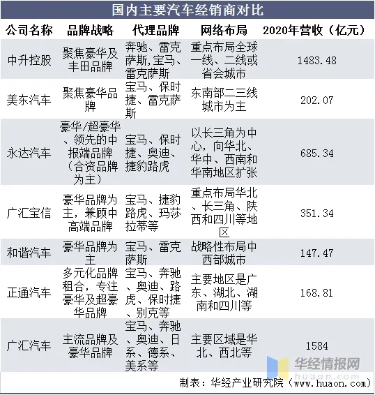 从我国7家主要汽车经销商来看,网络布局战略存在分化,有些企业同比增加了网点数量,有些企业则进行了缩减。相对于整体而言,豪华品牌的网点数量增加得较多,这与豪华车市场的高景气度密切相关。网络布局整体以一二线城市为主,除了收购店面之外,部分企业对已有店面进行升级改造,转换为高端和豪华品牌,以优化品牌结构,提高豪华品牌的占比。资本开支方面,除了收购门店之外,部分企业通过升级改造已有门店,降低了资本支出,加快了正常经营的节奏。资料来源:各公司公告,华经产业研究院整理