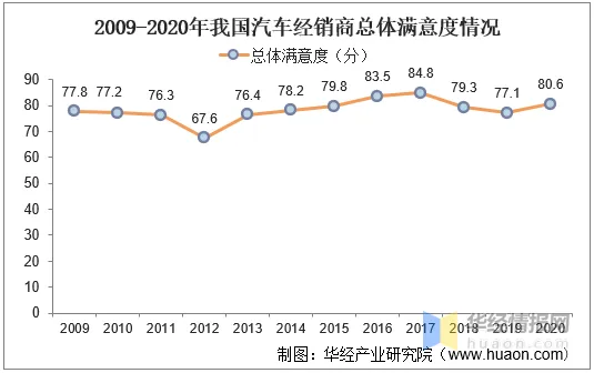 根据中国汽车流通协会发布调查数据显示,2020年全国汽车经销商生存状况调查于1月初正式启动,本次调查共覆盖近40余家经销商集团,600余家单店,共回收有效问卷1008份。2020年经销商总体满意度得分为80.6分,比2019年提升3.5分。资料来源:中国汽车流通协会,华经产业研究院整理