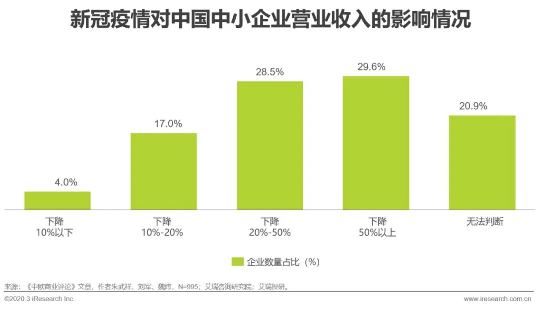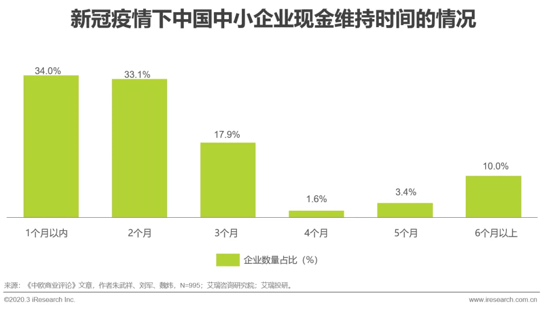 中小微企业是贡献就业、推动经济发展的重要力量,而相比于大型企业,此次新冠疫情推迟复产复工恰恰将对这部分企业带来极大的冲击。调研结果显示85%的中小企业现金只能维持3个月以内,接近30%收入将下降50%以上。
