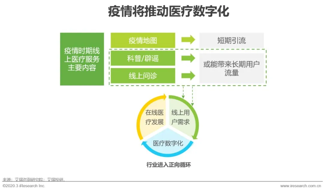 相对于美国而言,中国医疗数字化水平仍有一定增长空间。趁此次疫情“东风”,大量用户基于知识获取、疫情焦虑或日常问诊等需求深度体验了互联网医疗,部分或能在长期转化为稳定的线上需求,进而倒逼医疗的数字化与在线化,为行业提供有利的发展环境。但值得注意的是,尽管目前中国对医药的监管政策正在有所放开,开展在线医疗服务的限制仍然较大,且用户在线付费诊疗的习惯需要长时间培养,因此短期内的用户转化难度较高。