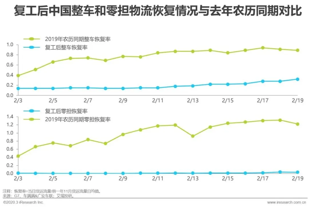 相比于以往,今年过年期间饿了么和美团外卖日活用户较平常时期下滑的幅度更小,而菜鸟裹裹与货车帮则呈现复工后恢复慢的态势。另外,从货运流量看,整车物流在复工后虽逐渐回暖,其恢复速度远弱于去年春节后的恢复势头,而零担物流则受制于中转场站的管控与司机未返岗的双重因素,在复工半个月内基本呈现零恢复的状态。