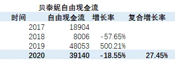 2020年贝泰妮自由现金流为:(万元)