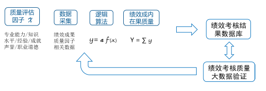 绩效量度评估模型运用数学建模方法和计算机算法,建立评估要素对绩效量度评估的数学逻辑关系模型,并通过云技术、区块链技术、大数据和人工智能AI技术进行关联运算与处理。