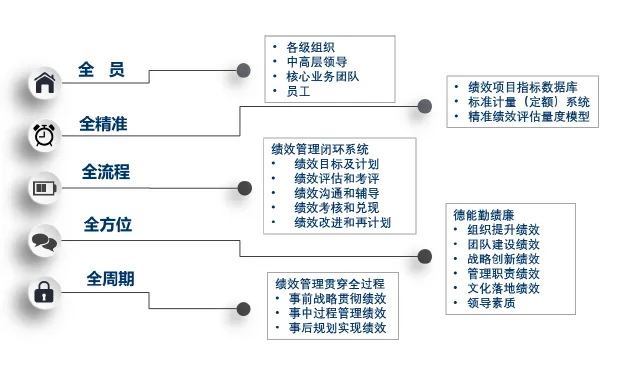 全绩效管理系统是一个采用数字化方法(Digitalization)对绩效管理方式和绩效管理流程进行重构的数字化绩效管理平台。其命名来自“全员、全精准、全方位、全周期、全流程”。