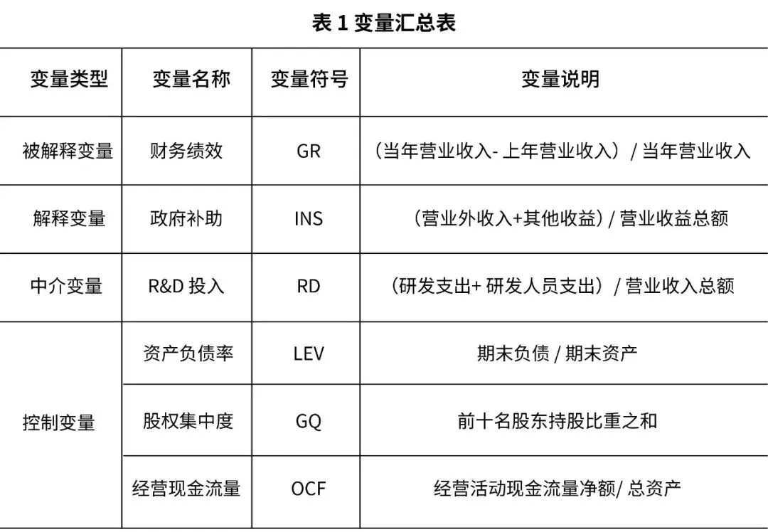 高新技术企业的经营效益和研发专利的产出之间具有显著的联系,新的科技成果除依赖创新型企业对项目的探索水平和有关制度之外,还依赖R&D的持续性投资,这里的R&D投资不但包括研发费用,还包括了科研者的科研水平。王素莲与阮复宽(2015)指出R&D投资会在研发进度结束以后转化成企业强大的生产力,会提高新商品在市场环境中的需求量,进而确保经营效益,提高企业的价值,从中能够进一步确立R&D投资和企业绩效二者间具有正向关联。企业施行R&D投入是保证创新成果的前提,创新成果是服务于企业经济市场地位的商品保障,企业财政收益则体现在财务绩效上,故而本文认为,R&D投入和企业的财务绩效之间有一定的联系,基于上述内容的研究提出下列假设。在当前的环境下,不同行业都非常关注技术的发展和运用,积极响应国家号召。以电子通信产业中高新技术企业为例,作为中国科技创新的领军企业,政府鼓励研发型企业主动参加研发活动,向市场提供多元化、新颖的产品,通过拨付较多的财政资金给予公司创新补助。从电子通信产业统计年鉴的有关数据能够得知,近些年,政府对这一行业的扶持经费表现出上升的态势,经济收益的提升趋势在行业中处于领先水平,行业中不同高新技术企业的财务绩效也呈现出上升的趋势,从中可以看出,政府补助对企业创新行动具有显著的积极作用,进而作用到公司的财务绩效。针对以上内容的分析提出如下假设。H3:政府补助对企业财务绩效有正向影响。