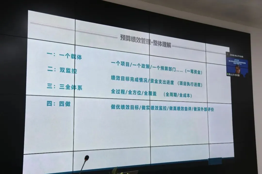 国众联佛山分公司研发部经理张志珊通过线上的方式,结合绩效评价业务,以预算绩效管理交流为主题向大家进行了分享介绍。张志珊在会议中详细解读了广东省委、省政府印发《关于全面实施预算绩效管理的若干意见》,提到需强化绩效结果应用,建立完善绩效结果与预算安排和政策调整挂钩机制。
