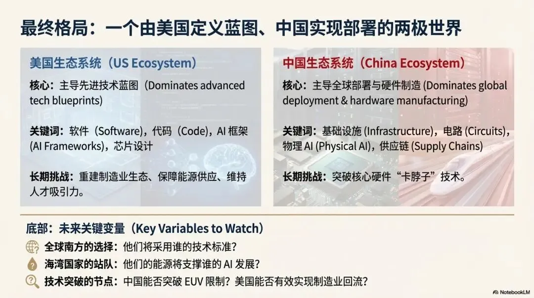 美国主导先进技术蓝图(软件、代码),东大主导全球部署与硬件制造(基础设施、电路)