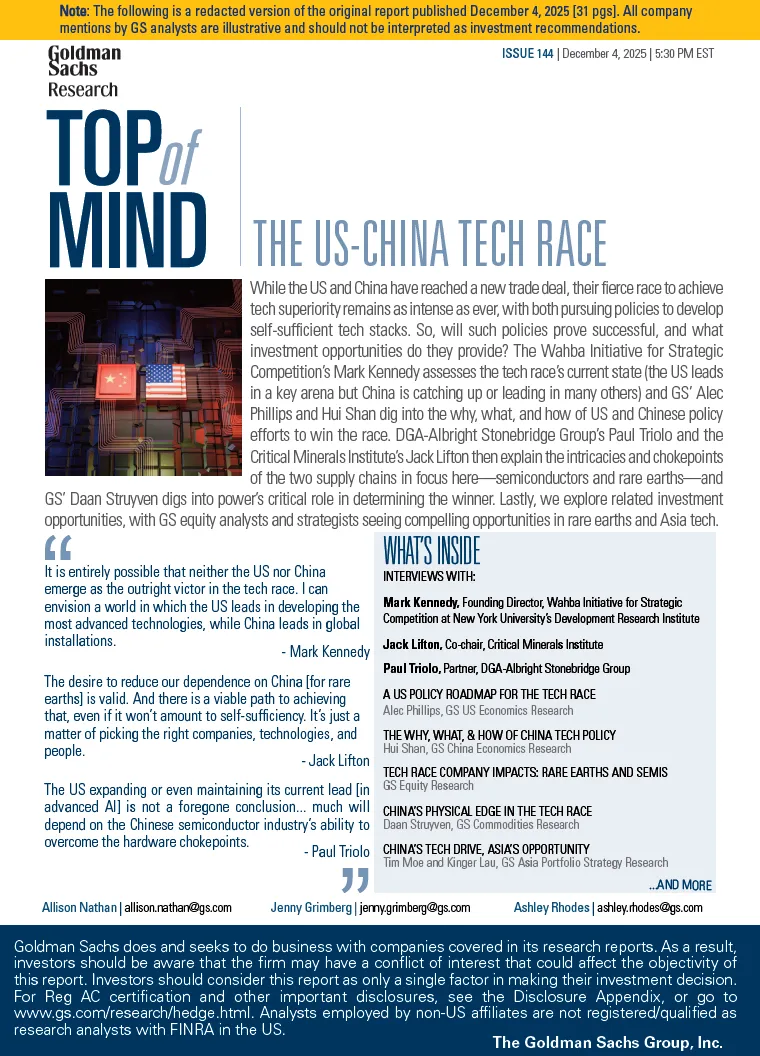 最近,高盛集团发布了《中美科技竞赛报告》(