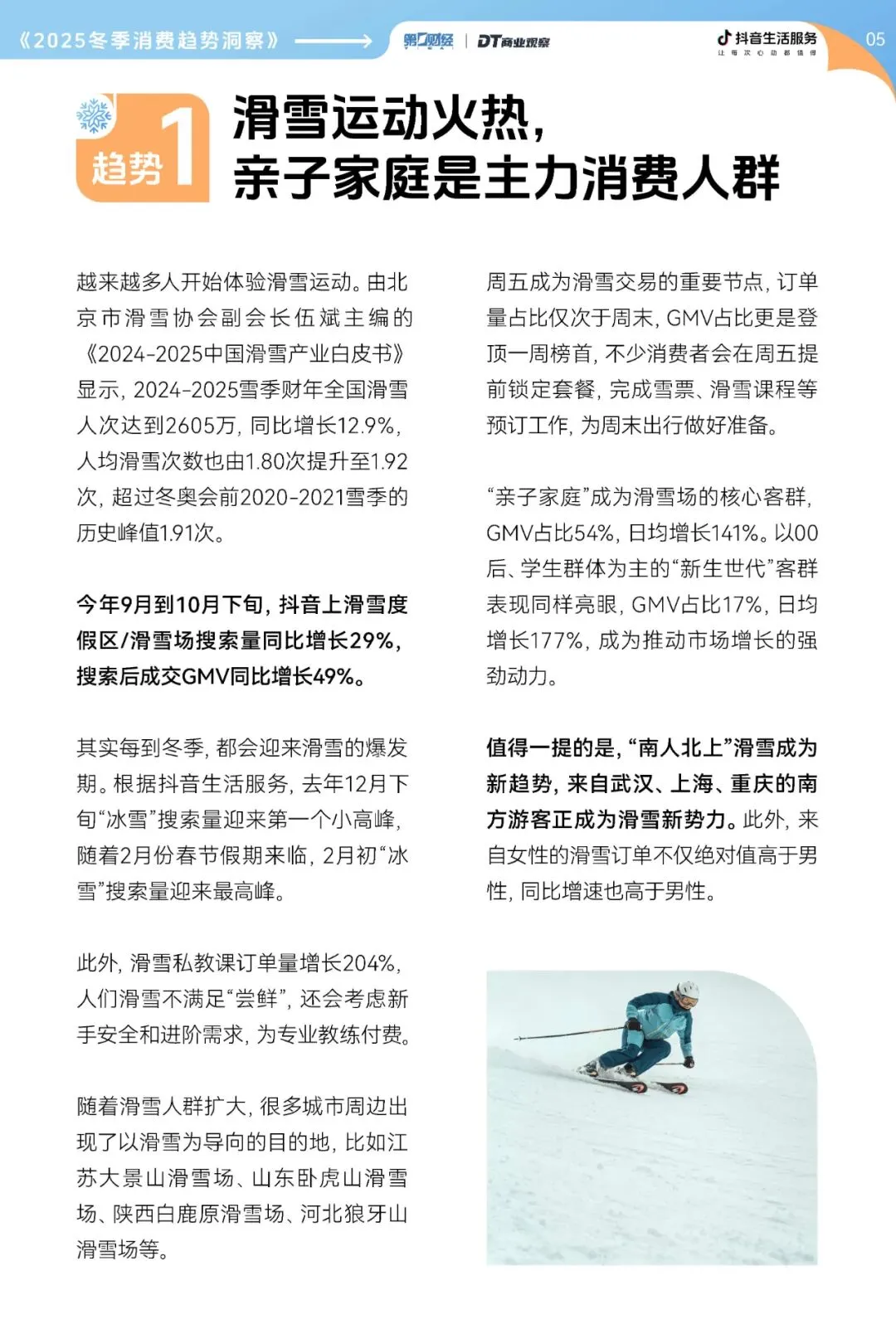 冰雪游的爆发,首先源于消费人群的大扩容。“亲子家庭”已经成为滑雪场的核心客群,GMV占比高达54%,日均增长更是达到141%。