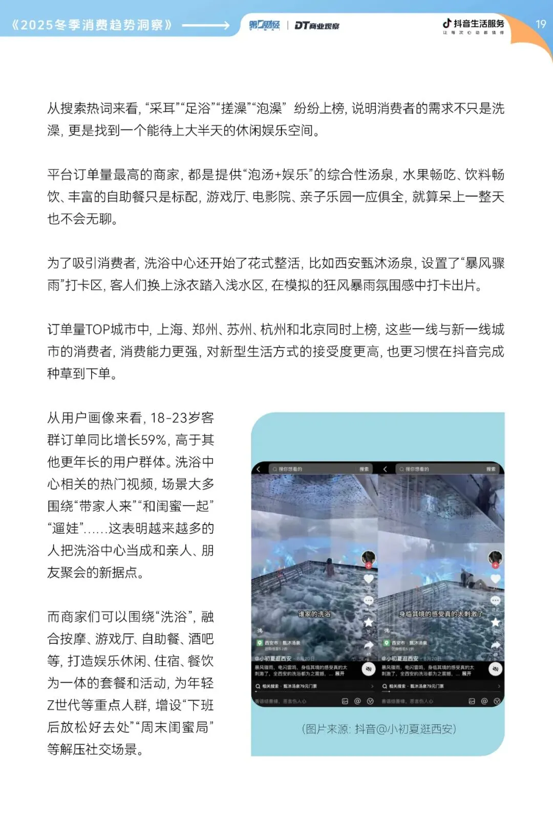 场景创新还在不断升级。西安甄沐汤泉推出“暴风骤雨”打卡区,用灯光和水流打造沉浸式体验;有的洗浴中心引入汉服体验,让消费者在泡汤之余还能拍一组古风大片。这些特色场景,成了年轻人社交分享的新素材,也让洗浴中心的客群越来越年轻。