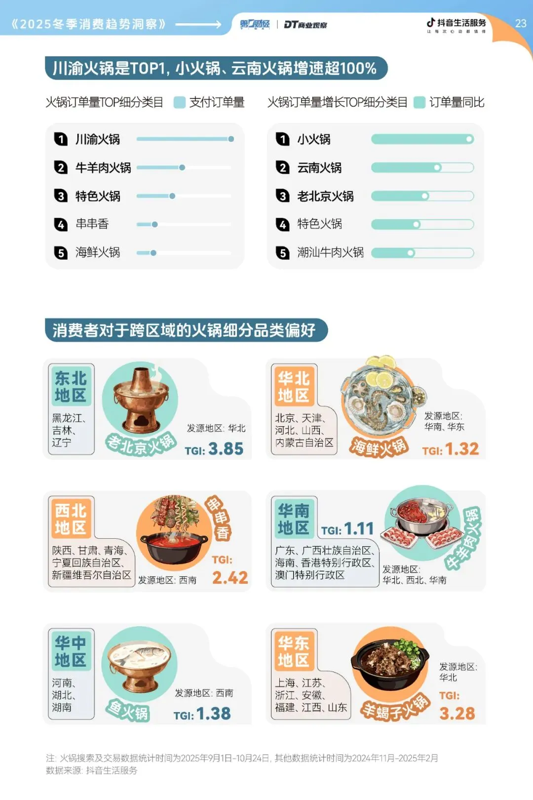 火锅无疑是冬季美食的“顶流”。数据显示,进入11月后,全国火锅订单量环比增长47%,搜索量同比增长32%。无论是川渝麻辣火锅、老北京铜锅涮肉,还是潮汕牛肉火锅,都迎来了消费高峰。