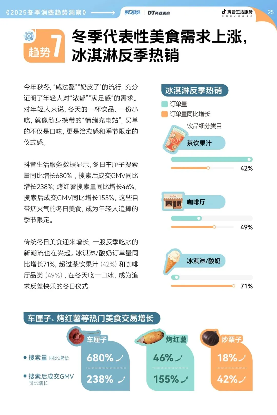 调研显示,这个冬天的消费市场,正呈现“冷天气”与“热消费”的鲜明反差。冰雪运动及带动消费规模突破1875亿元,休闲娱乐搜索后成交GMV暴涨393%,冬日美食订单量持续走高。三大赛道齐发力,共同撑起了冬季消费的“暖市场”。