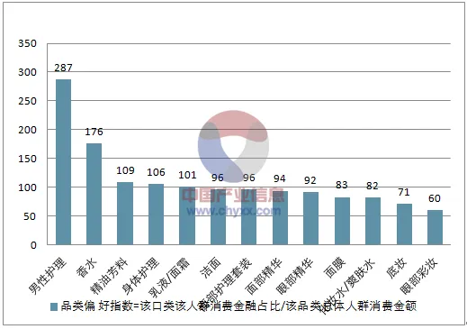 男士护肤美妆市场增长迅速,年轻男性成为新力量。随“日韩风”和“小鲜肉”等概念逐渐引领时尚,男士护肤美妆需求增长迅速。从整体趋势来看,男士护理类和香水类产品以明显优势占据天猫美妆男性消费偏好前两位,品类偏好指数达到287和176。男性群体对自身护理的要求更加细化,衍生出对面部形象以及整体气质的进阶需求,从而促进了男士化妆品市场的销量。