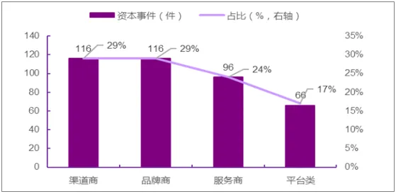 国内并购整合现象兴起,三成行业收购旨在对渠道的争夺。 随着电商的发展以及“触达消费者最后一米”概念的深入,品牌对于线上线下渠道的布局越来越重视。2007年到2017年我国化妆品行业发生的394起资本事件中,渠道商116起,占比29%。其中较为典型的有唯品会收购乐蜂网,扩大线上销售渠道;渣打集团收购高端美容连锁思妍丽,主动布局下游渠道;青岛金王先后收购上海月沣和杭州悠可,整合线下线上渠道。