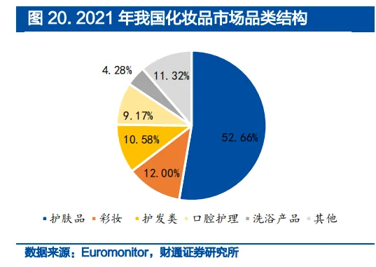 化妆品领域中最大的细分赛道则是护肤品,占整个化妆品市场规模的