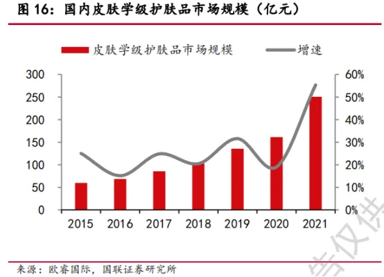 根据欧睿国际数据,国内皮肤学级护肤品市场增长强劲,