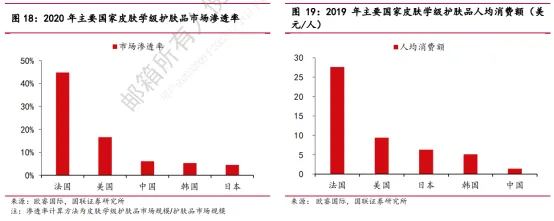 下面再来看下皮肤学级护肤品市场渗透率及人均消费额: