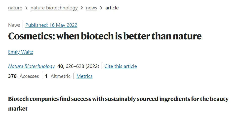 “这种并不需要那么密集的资本投资、更快的创新周期和消费者需求的结合,为美容领域带来了越来越多的生物技术公司。” 在 2022 年 5 月 16 日发表于 Nature Biotechnology 上的一篇观点文章中,这样写道。