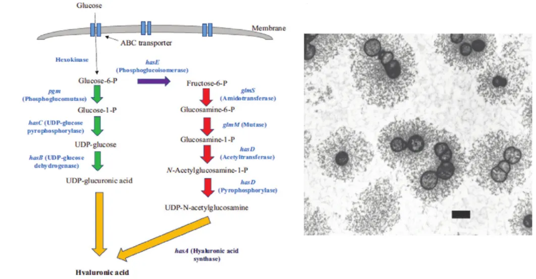 兽疫链球菌中透明质酸的生物合成途径(来源:Extracellular Matrix - Developments and Therapeutics)