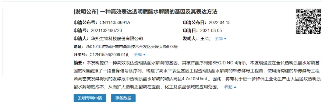 而在近些年,在传统菌种诱变和发酵的基础上,华熙生物已经将目光聚焦于合成生物学,并且着力布局。从专利上观察,其实我们已经能够看到其在合成生物技术布局上所取得的一些进展。