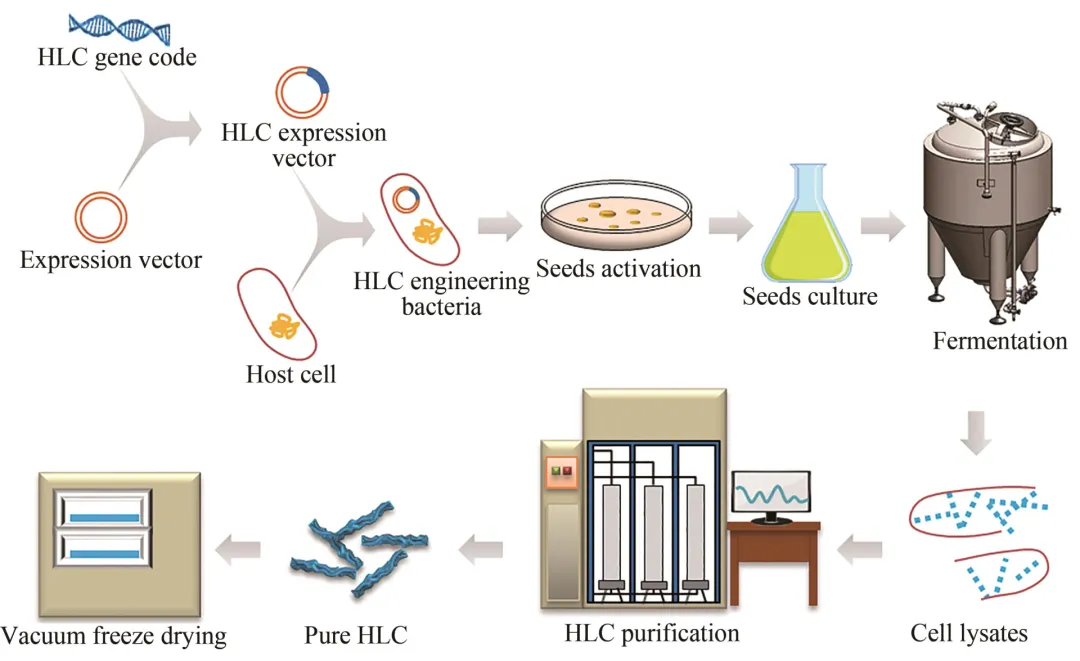 类人胶原蛋白的生产过程示意图(来源:《合成生物学》期刊)