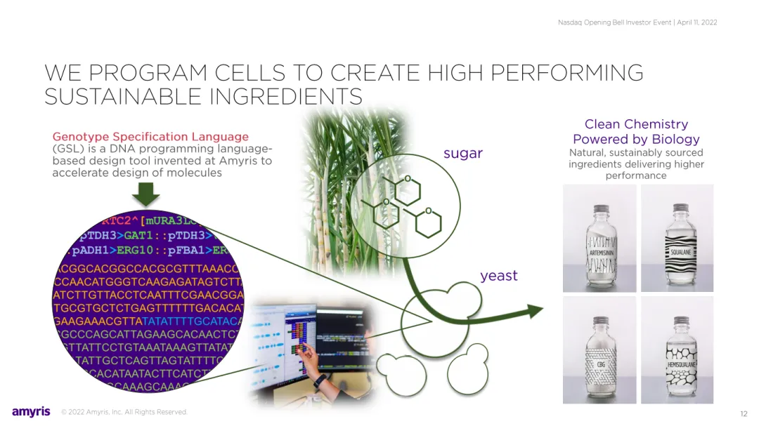 在这些公司中,我们首先最为关注的,无疑是合成生物学产业上的先驱 Amyris 了。这家公司曾经历过抗疟疾药物青蒿素上的成功,也曾经历过生物燃料上的失败。而在遭遇到严峻危机之后,Amyris 便开始转向了香水、化妆品等高附加值成分,转型至今,已经拥有 8 个不同品牌的化妆品产品。