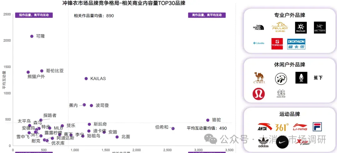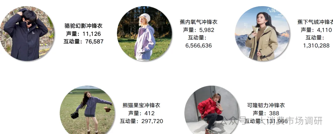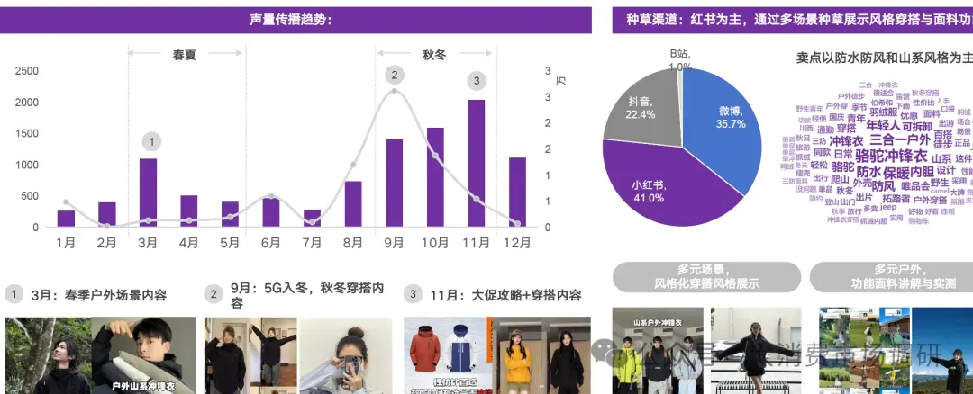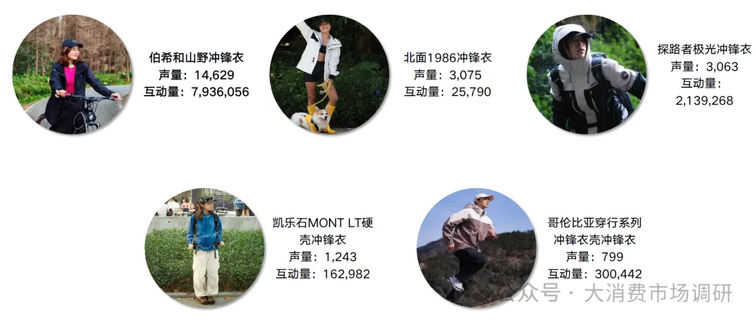 专业品牌冲锋衣主力单品声量表现:伯希和山野种草热度最高