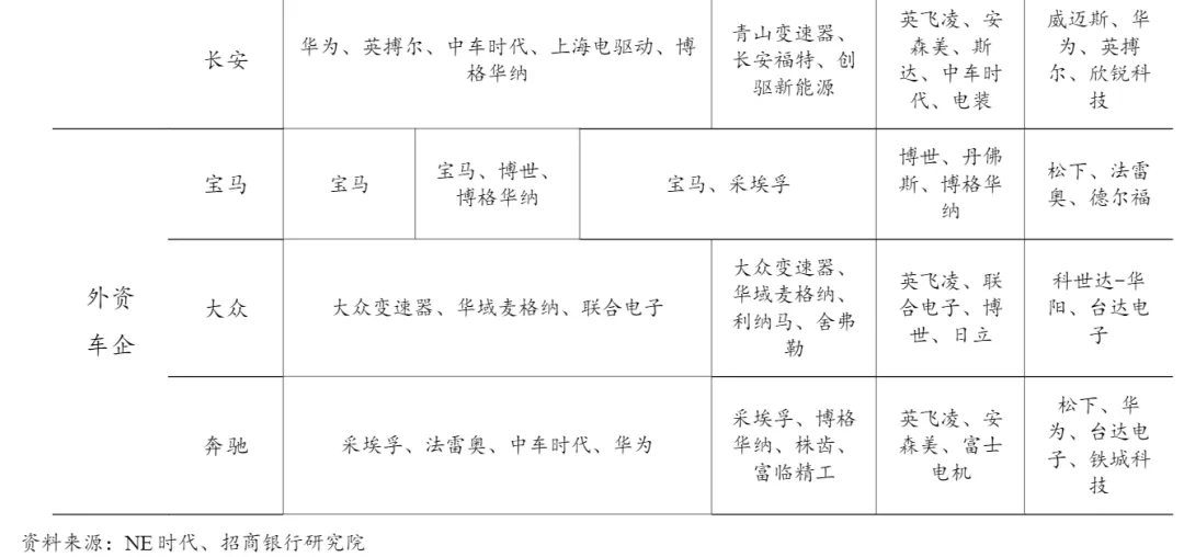 上图:主要车企电驱动系统供应链情况