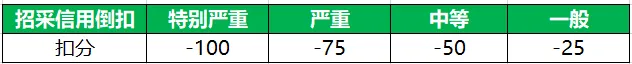 招采信用到扣分(-25— -100分)