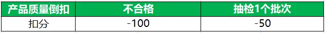 产品质量扣分(-50— -100分)