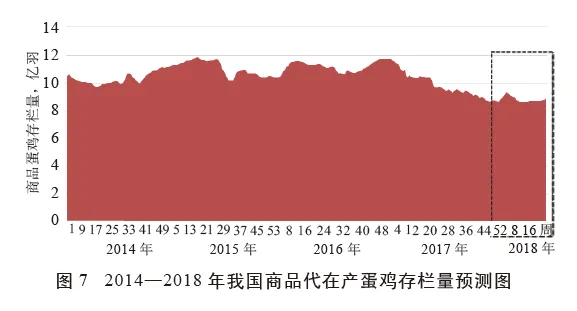 根据博亚和讯蛋鸡产业模拟系统测算结果显示, 2018 年1~32 周商品代补栏蛋鸡约6.9 亿羽(该部分蛋鸡在2018 年全部进入产蛋期),2018 年全年在产蛋鸡存栏或在10 亿~10.3 亿羽,同时随着近年来蛋鸡养殖生产性能的提高,鸡蛋供应趋于平衡或紧平衡状态(图7)。