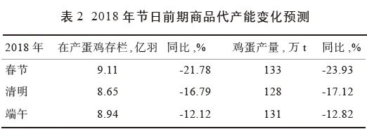 2018 年高产配套系产蛋鸡存栏低位回升, 但短期内仍在9 亿羽以下,将创监测数据以来新低,其中2018 年春节、清明、端午节日前6 周在产蛋鸡存栏持续偏低, 鸡蛋产量同比分别下降23.93%、17.12%、12.82%,鸡蛋价格或高位震荡,在7.5~9元/kg 调整;下半年鸡蛋供应偏紧得到缓解,蛋价仍在成本线以上运行。预计2018 年蛋价高点在春节前或中秋前出现,全年均价将高于2017 年。但2018 年饲料原料价格看涨,将会压缩蛋鸡养殖盈利空间,整体来看,全年高产配套系蛋鸡养殖预计仍将处于盈利区间,且高于2017 年整体盈利水平。