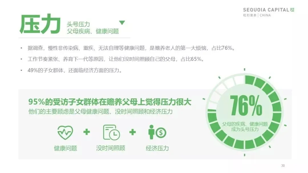 如何减少健康问题、提高晚年生活质量是困扰老年人的首要问题,也是他们购买养老产品和服务的重要动力。