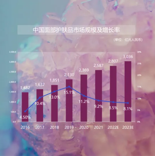 随着国民消费需求和“颜值经济”的崛起,国内面部护肤品市场规模自2019年起持续5年增长。