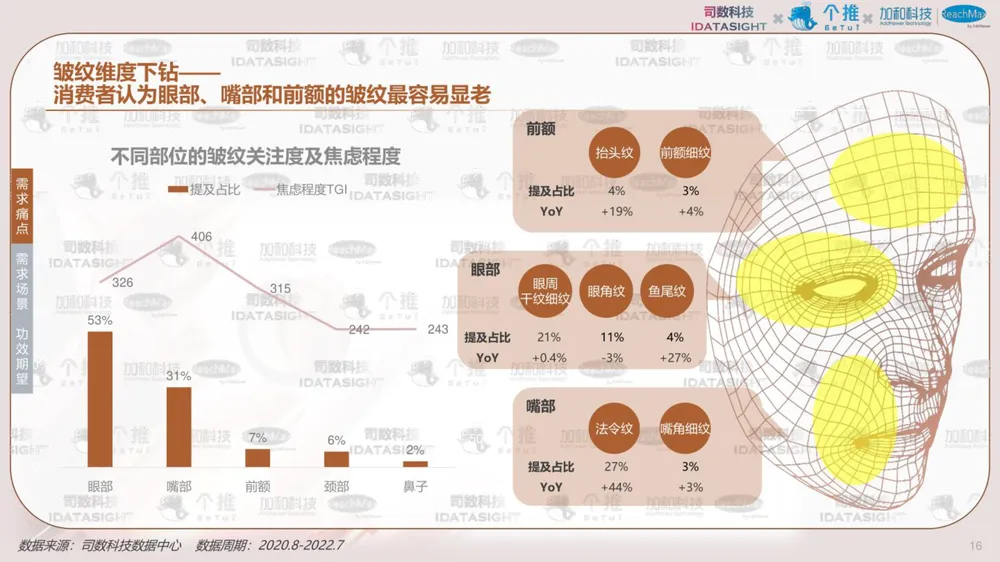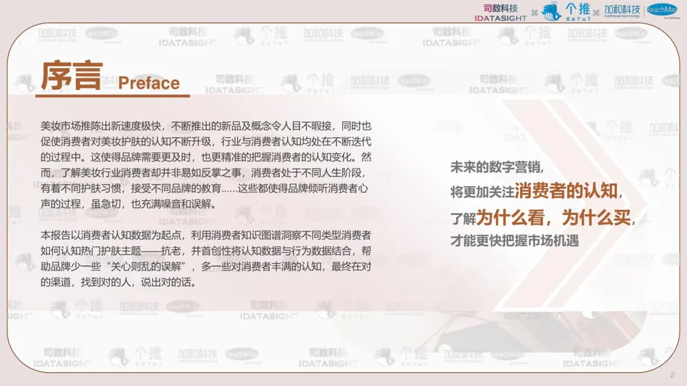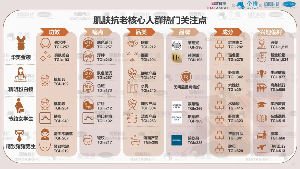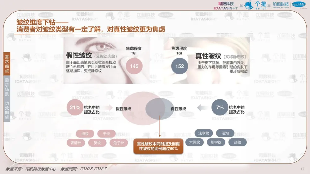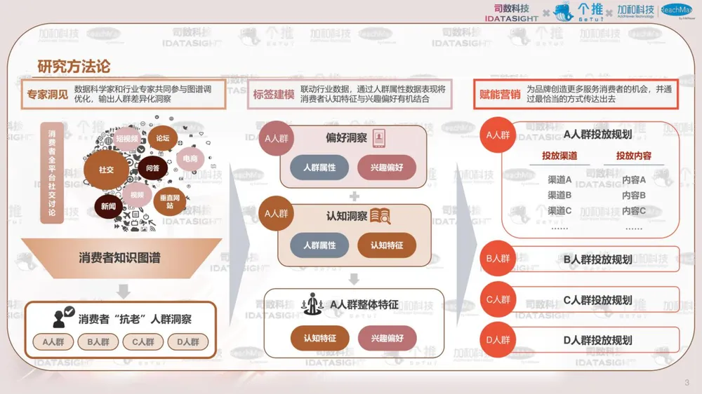 报告以消费者认知数据为起点,利用消费者知识图谱洞察不同类型消费者如何认知热门护肤主题-抗老,并首创性将认知数据与行为数据结合,帮助品牌少一些“关心则乱的误解”,多一些对消费者丰满的认知,最终在对的渠道,找到对的人,说出对的话。